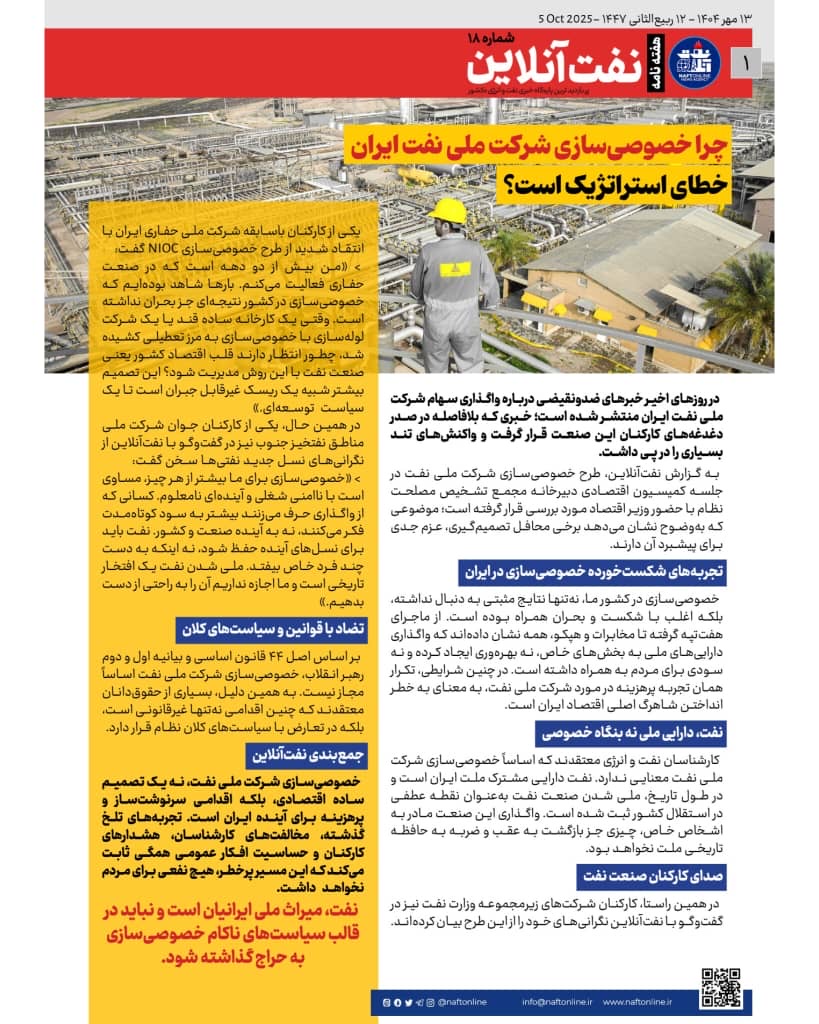 خصوصیسازی شرکت ملی نفت، نه یک تصمیم ساده اقتصادی، بلکه اقدامی سرنوشتساز و پرهزینه برای آینده ایران است. تجربههای تلخ گذشته، مخالفتهای کارشناسان، هشدارهای کارکنان و حساسیت افکار عمومی همگی ثابت میکند که این مسیر پرخطر، هیچ نفعی برای مردم نخواهد داشت.